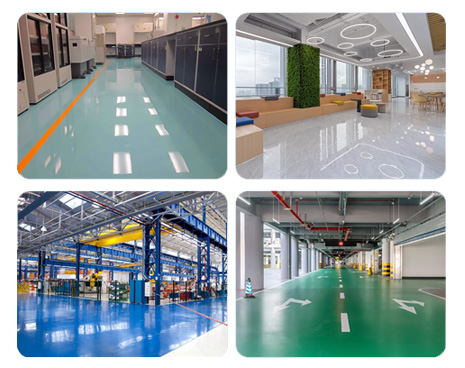 产品适用于工业厂房、停车场、仓库、超市、医院、实验室、体育场馆、游乐场等地面工程施工;种类丰富,性能稳定,绿色环保